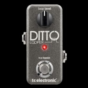 This is the TC Electronic entry level base Looper Pedal. The original Ditto offers 5 minutes of loop time, unlimited overdubs, and Undo/Redo functions. With a minimal power consumption of approximately 100 ma, you’ll need a power adapter to use with this pedal as you can NOT use a 9v battery. Sorry, the power adapter is NOT included (unless you’re purchasing a package set that states otherwise). This pedal is true-bypass and analogue dry-thru signal, giving very good quality sound output. The small footprint of the Ditto looper is ideally intended for guitar players who want a very simple, intuitive experience that is very dependable, solid and durable. With 24-bit, 96k uncompressed audio, and standard single foot switch operation, you can’t go wrong with this pedal!! You can dial in the overall loop volume with the single control knob, and the foot switch does the rest.